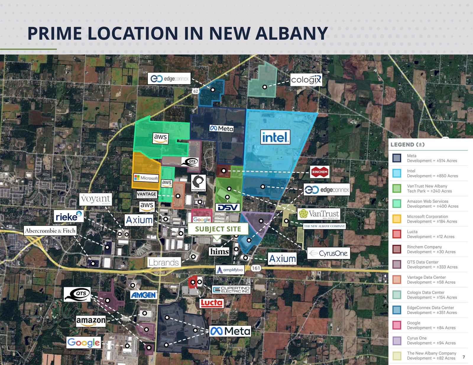 As it stands today, Amazon, Google, Microsoft and Meta all have data centers or commitments to build data centers within New Albany, Ohio. In addition to the data centers, Central Ohio has also welcomed a commitment from Intel to build one of the largest semiconductor factories in the world. This decision was made in no small part due to the state offering nearly $2 billion in incentives and tax breaks for the California-based Intel, including “a 30-year tax break” approved by state legislators allowing “Intel to save $650 million.” In February 2026, Intel announced delays until 2030 regarding this project. New Albany executives have described the Intel deal and the influx of Big Tech data centers as necessary to establish the “Silicon Heartland” in Ohio, with New Albany at its center.